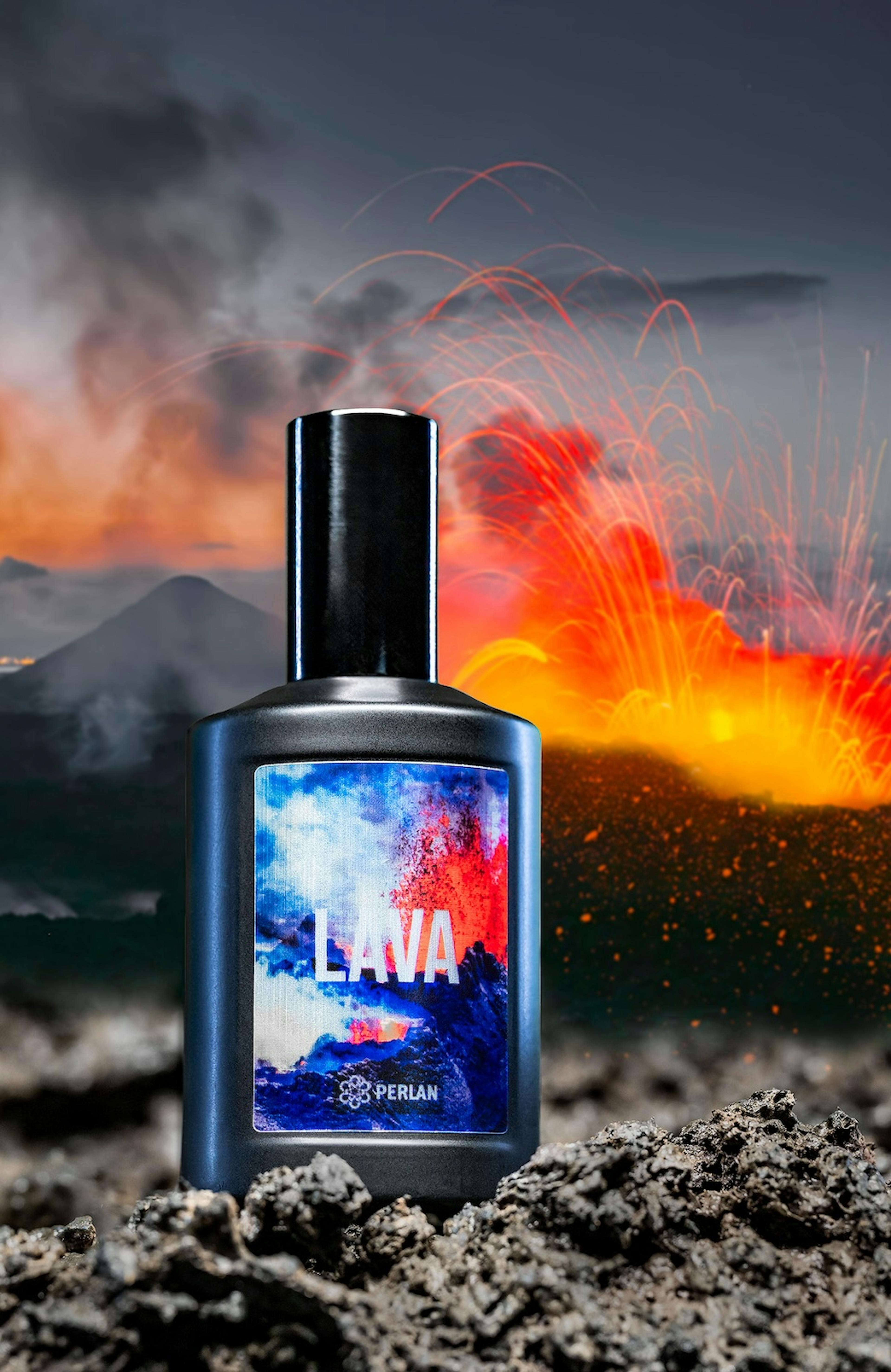 Volcano, the smell of newborn earth, comes flowing in flames from earths womb, flows over moss, burns the heather, volcanic fumes mix with cold winds, smell of sulphur scent of burned birch tar, leaves a metallic flavour in your mouth.